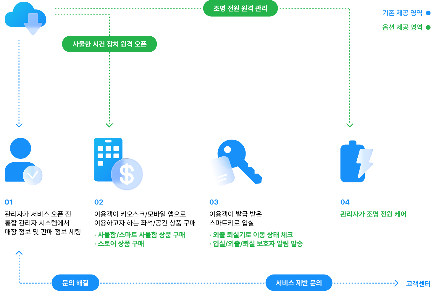키오스크, 입실기, 통합관리자 시스템을 기본 패키지로 제공합니다.